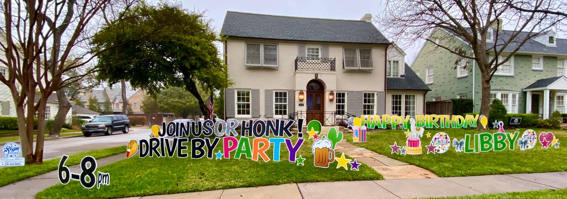 Yard greetings and cards are perfect for birthdays, retirement parties, graduations and holidays like Halloween and Christmas. We also offer yard letters so you can say whatever you want with a yard message. Each set comes with stakes and is printed in full digital color. Our yard decorations are waterproof and very durable.
